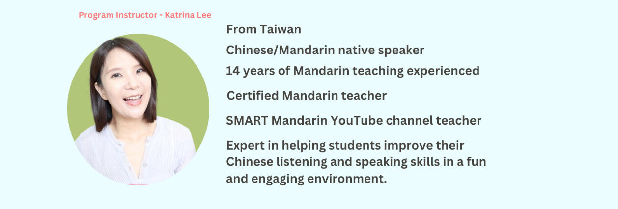 "I have been part of the Chinese Immersion Hub for a short time now, and it has been an incredible experience so far. The platform is engaging, supportive, and connects learners from all over the world, creating a vibrant community of individuals united by the goal of mastering Mandarin. The sense of camaraderie and shared enthusiasm for learning is truly inspiring.A key factor in my learning success has been Miss Katrina. Her teaching style is exceptionalโpatient, receptive, and deeply knowledgeable. Her ability to engage students of all levels, while maintaining a positive and encouraging environment, makes every lesson both effective and fun.I truly feel that being part of Chinese Immersion Hub has enhanced my language learning journey, and I am grateful to be learning under Katrinaโs guidance. The combination of a global community and such a dedicated teacher makes Chinese Immersion Hub a one-of-a-kind learning experience!" ๐๐น๐ผ